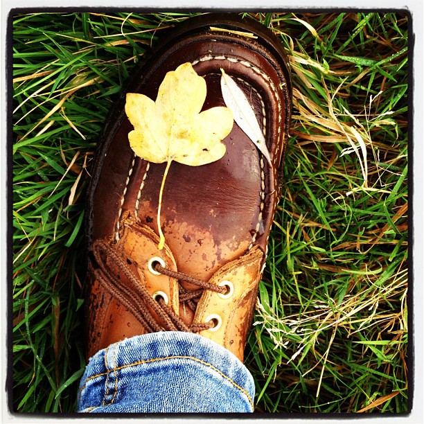 Golden leaves— My boot's tongue Tastes Autumn