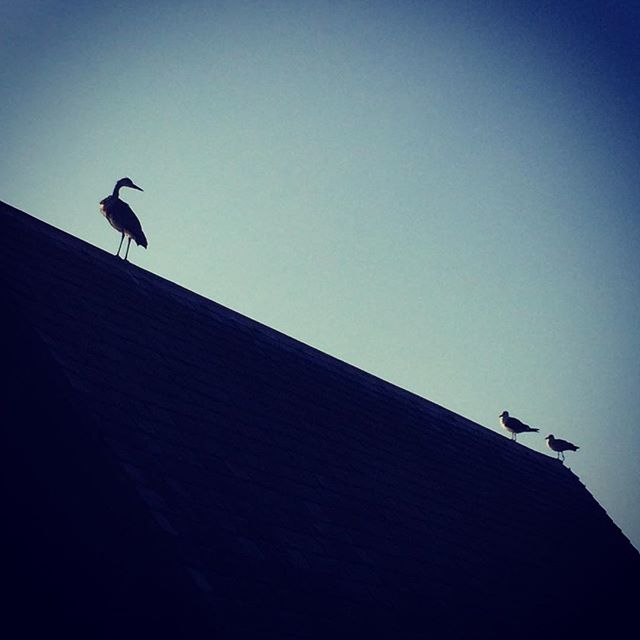 An instagram picture: Heron and seagulls, #hydepark #london #birds. Never seen a heron on a roof before and never with #seagulls