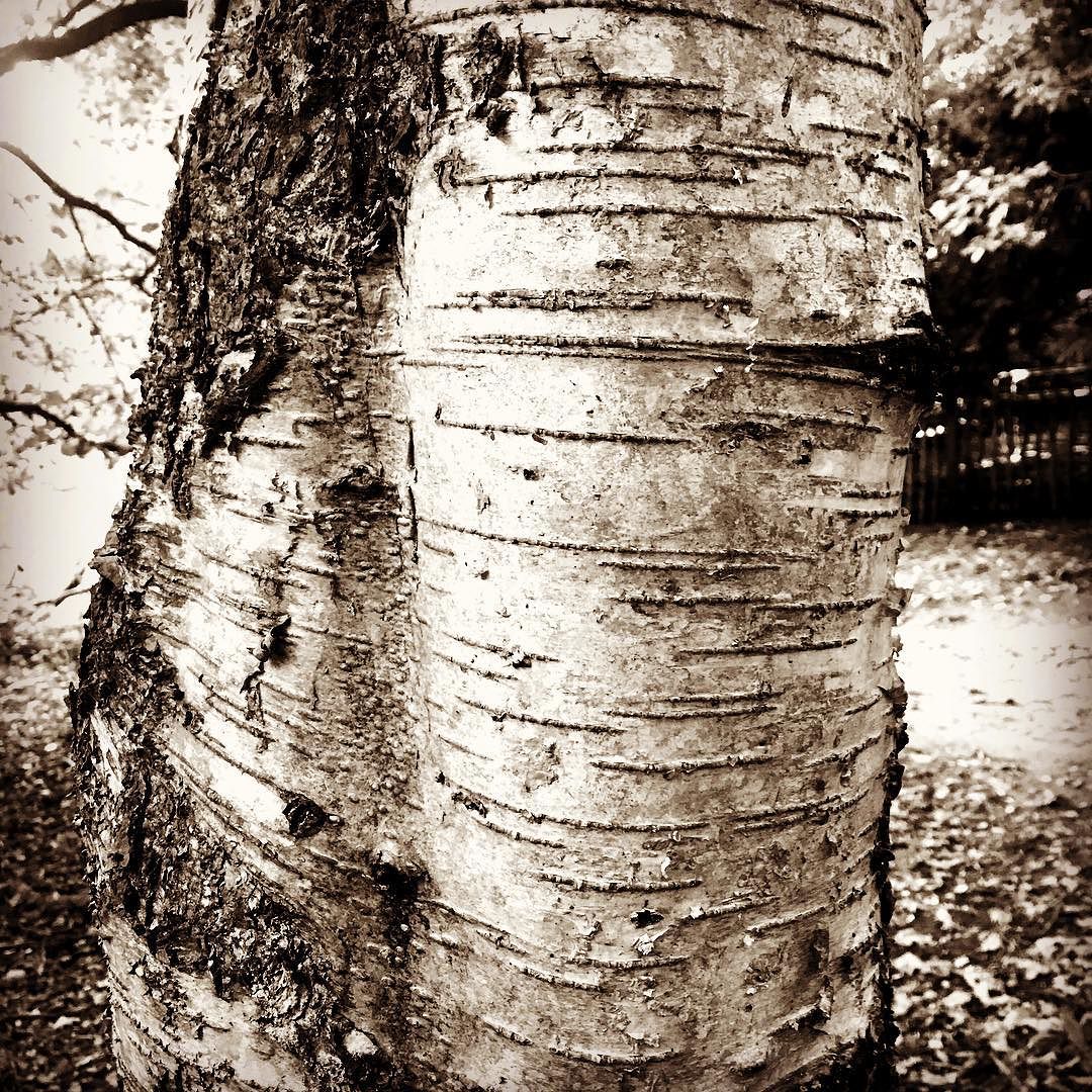 An instagram picture: Silver birch, close. #HampsteadHeath #trees #mono #b&w