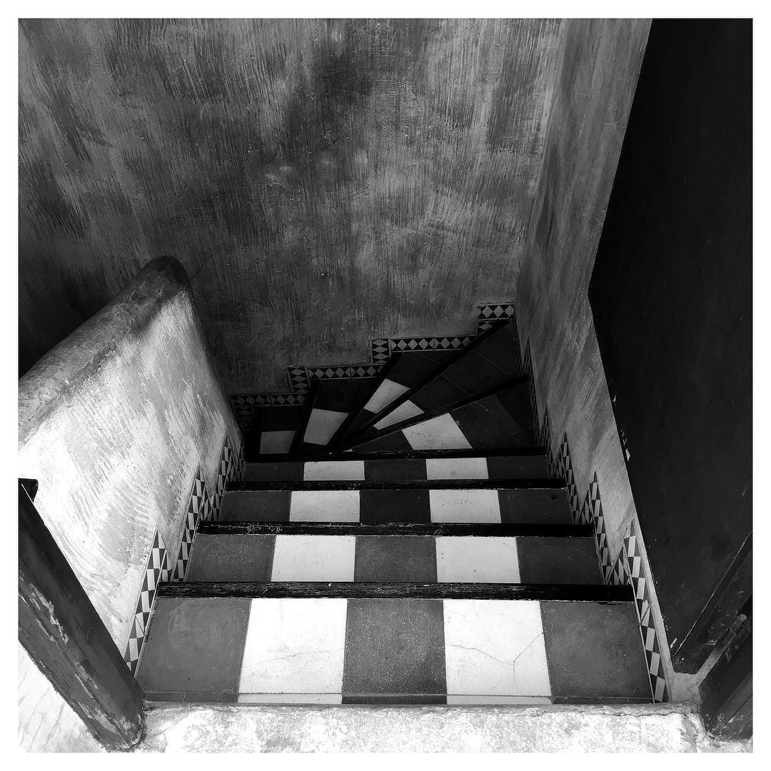 An instagram picture: Stairwell #marrakech #geometry #monochrome #blackandwhite.