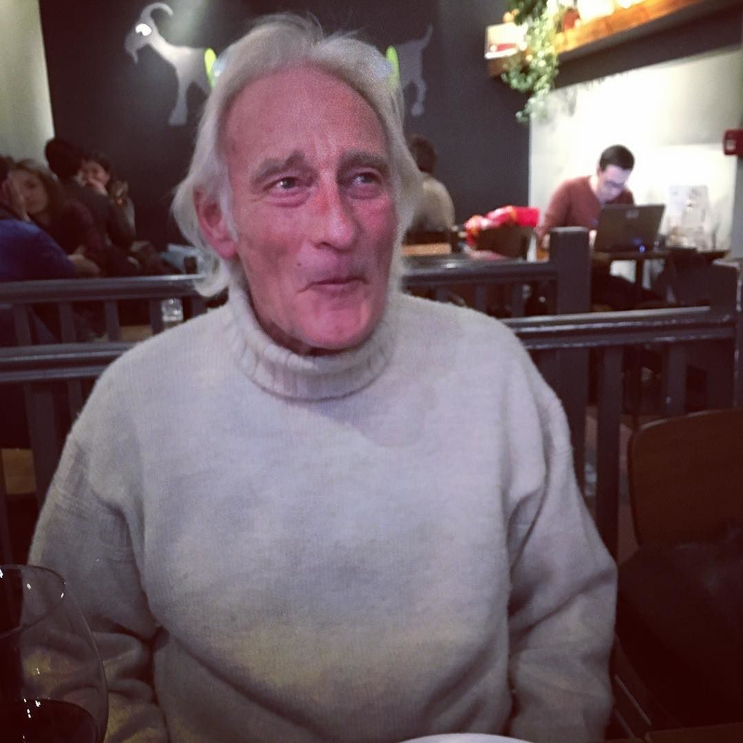 An instagram picture: Drinks with the immense Jack Bond this evening while he told us how he came to make a film with #salvadordali in 1965.