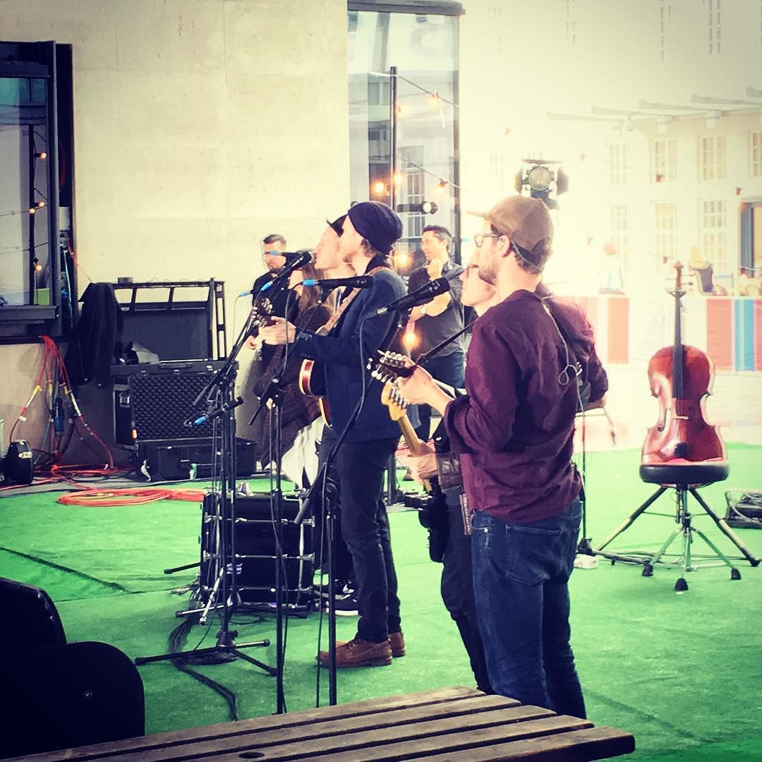 An instagram picture: The #lumineers doing a soundcheck at the BBC.