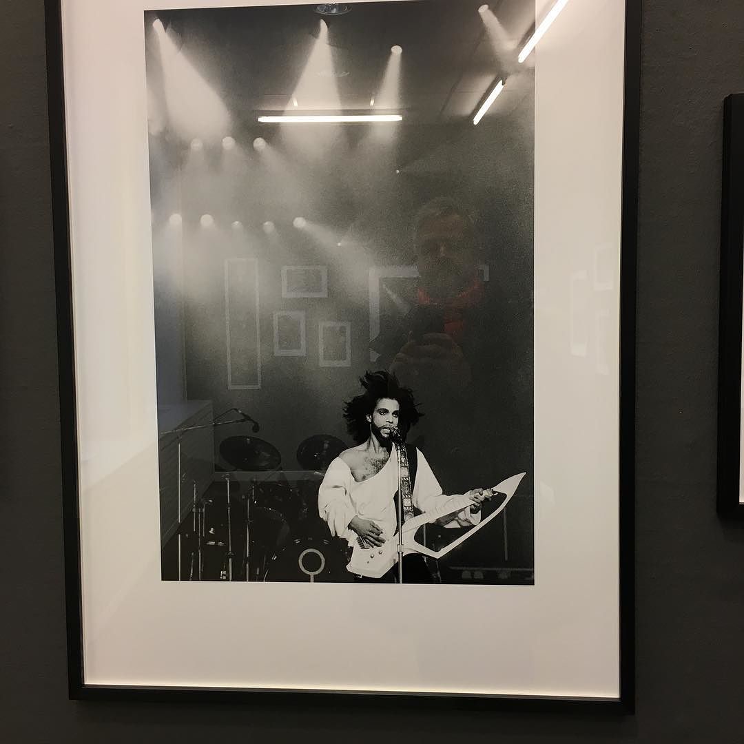 An instagram picture: In #Copenhagen went to photo gallery of shots by Gorm Valentin (excuse spelling if wrong). Terrific photos of #Prince, #Bowie and Leonard Cohen