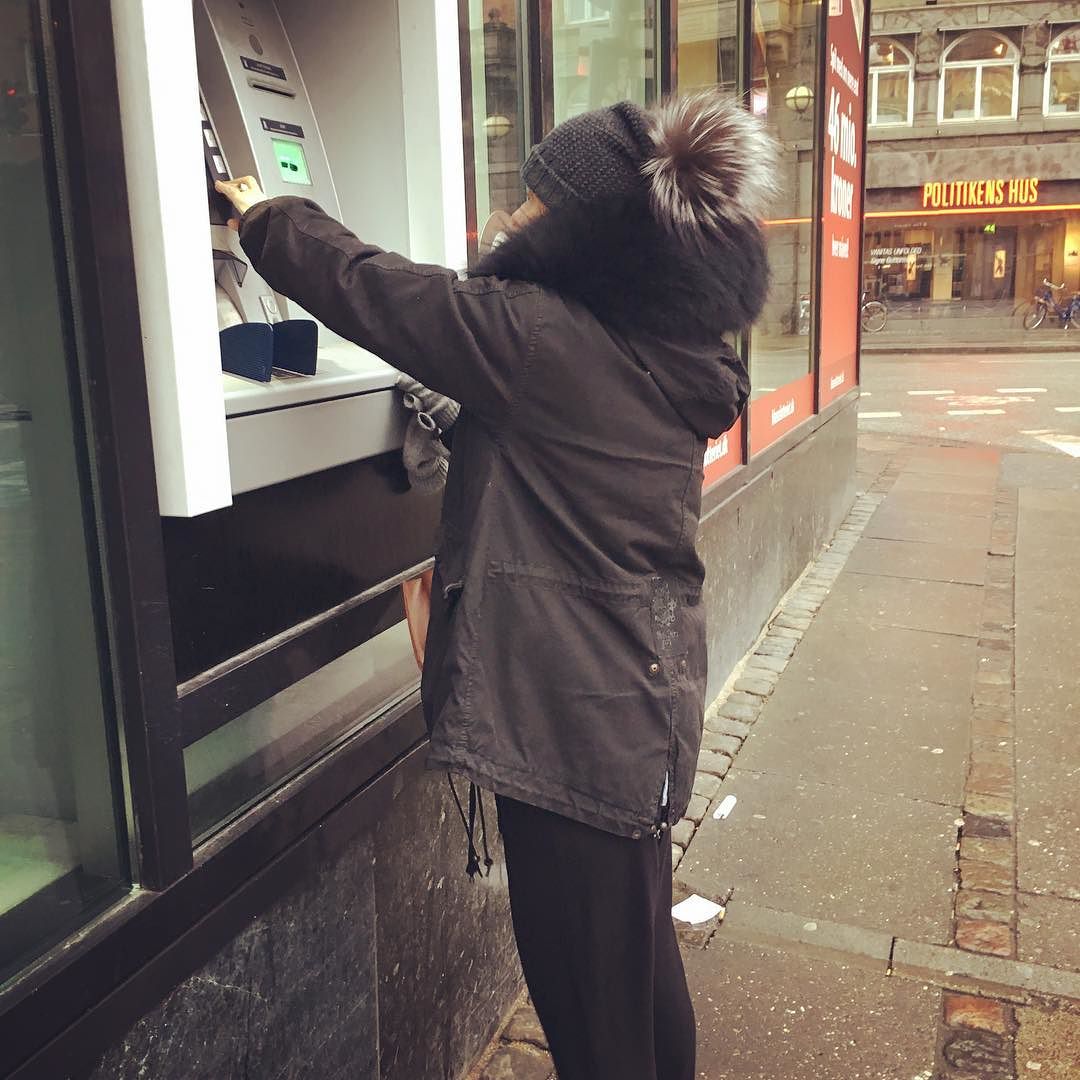 An instagram picture: The #Danes tend to be tall but this is ridiculous. Mrs P struggles to use ATM for Grown-Ups in Copenhagen!