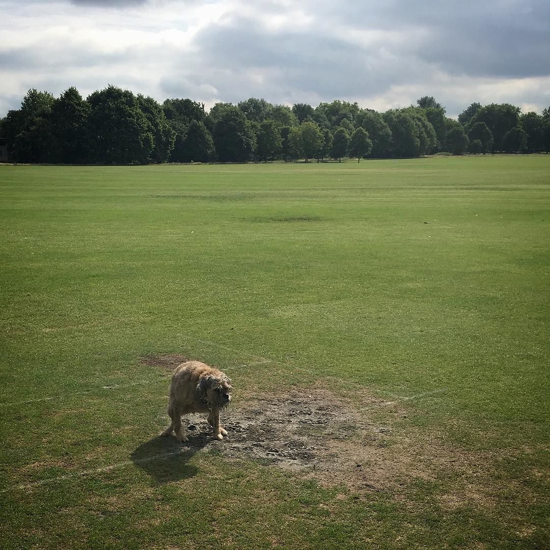 An instagram picture: “Take that, #cricket pitch!” #justnotcricket