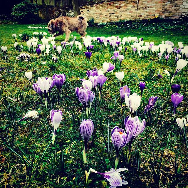 #spring #crocus with small dog #borderterrier